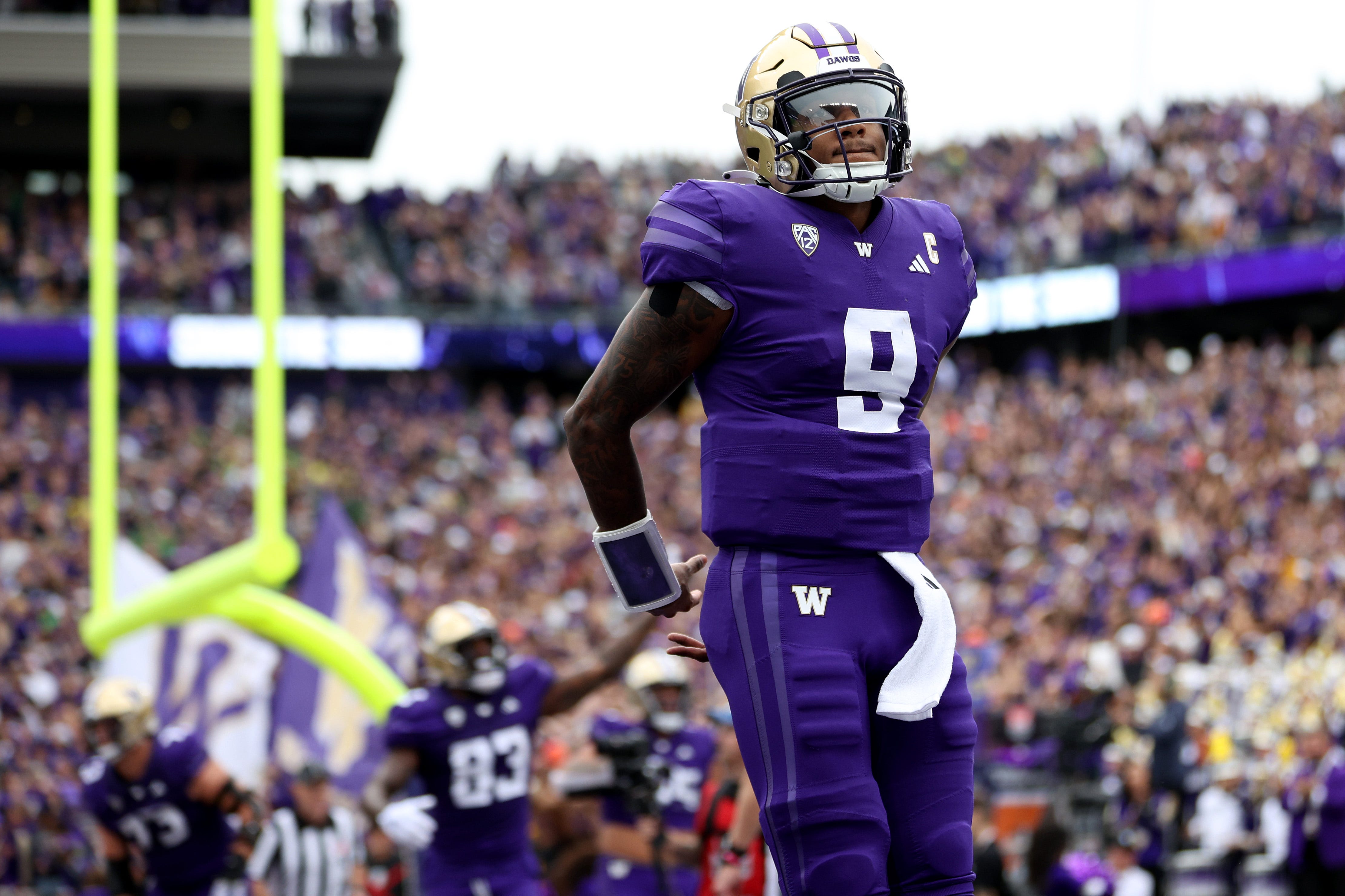 Mas o quarterback do Washington Huskies conseguiu um momento marcante no quarto período que o colocou no banco do motorista para o primeiro Heisman na história do programa – e colocou o sexto colocado Huskies no banco do motorista para a final do Pac-12. Campeonato e uma possível vaga no College Football Playoff com uma vitória de retorno por 36-33 contra o Oregon.
